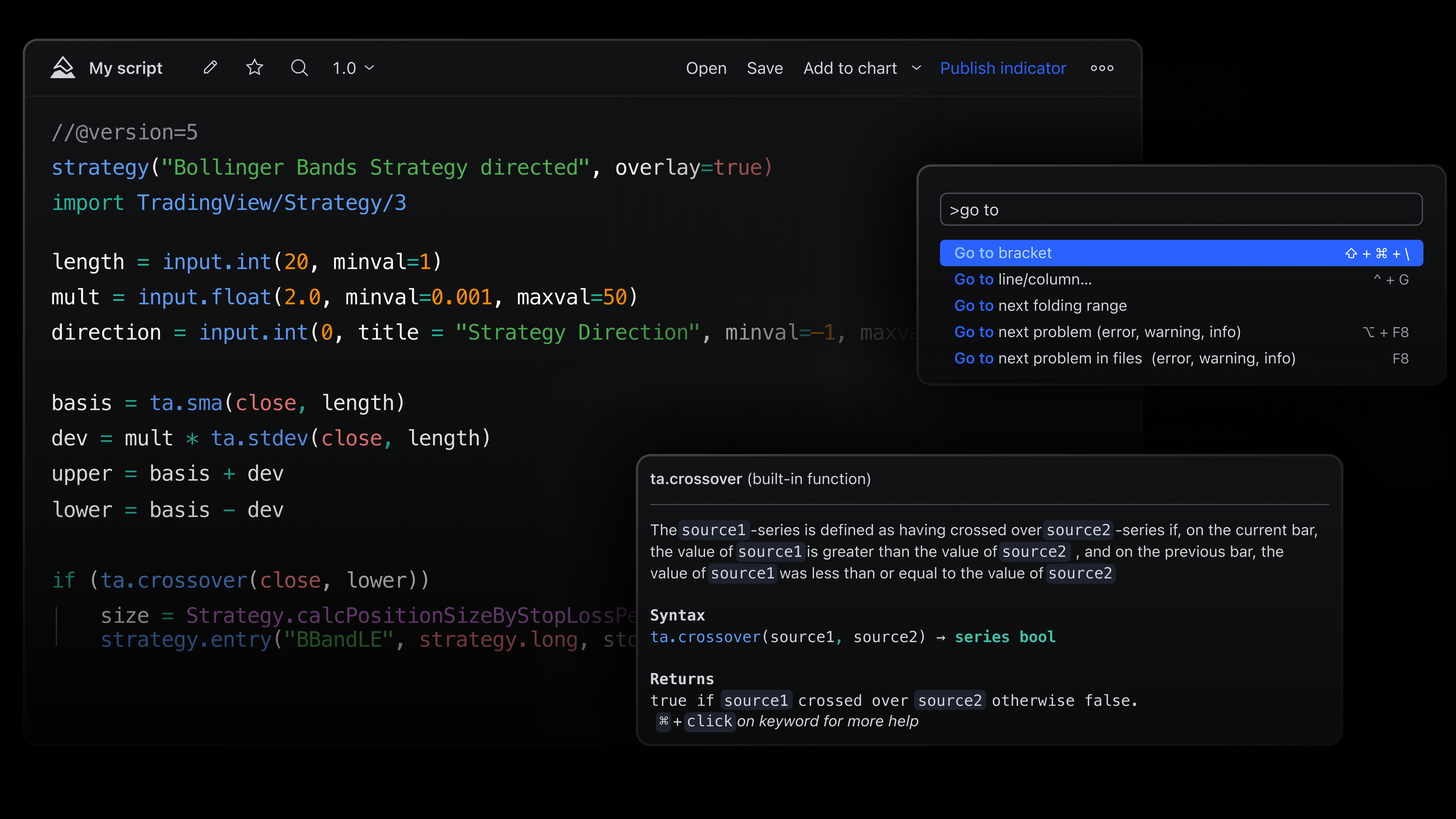 TradingView'deki hazır göstergeler ve stratejilerle ya da kendi oluşturduğunuz göstergeler ve stratejilerle, Osmanlı Yatırım üzerinden kolayca algoritmik işlemler gerçekleştirebilirsiniz
